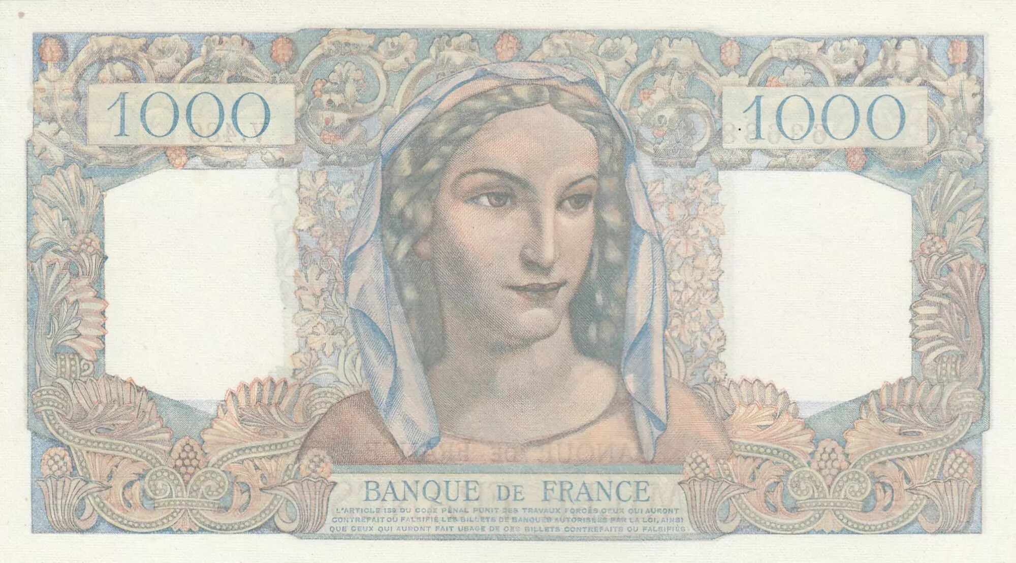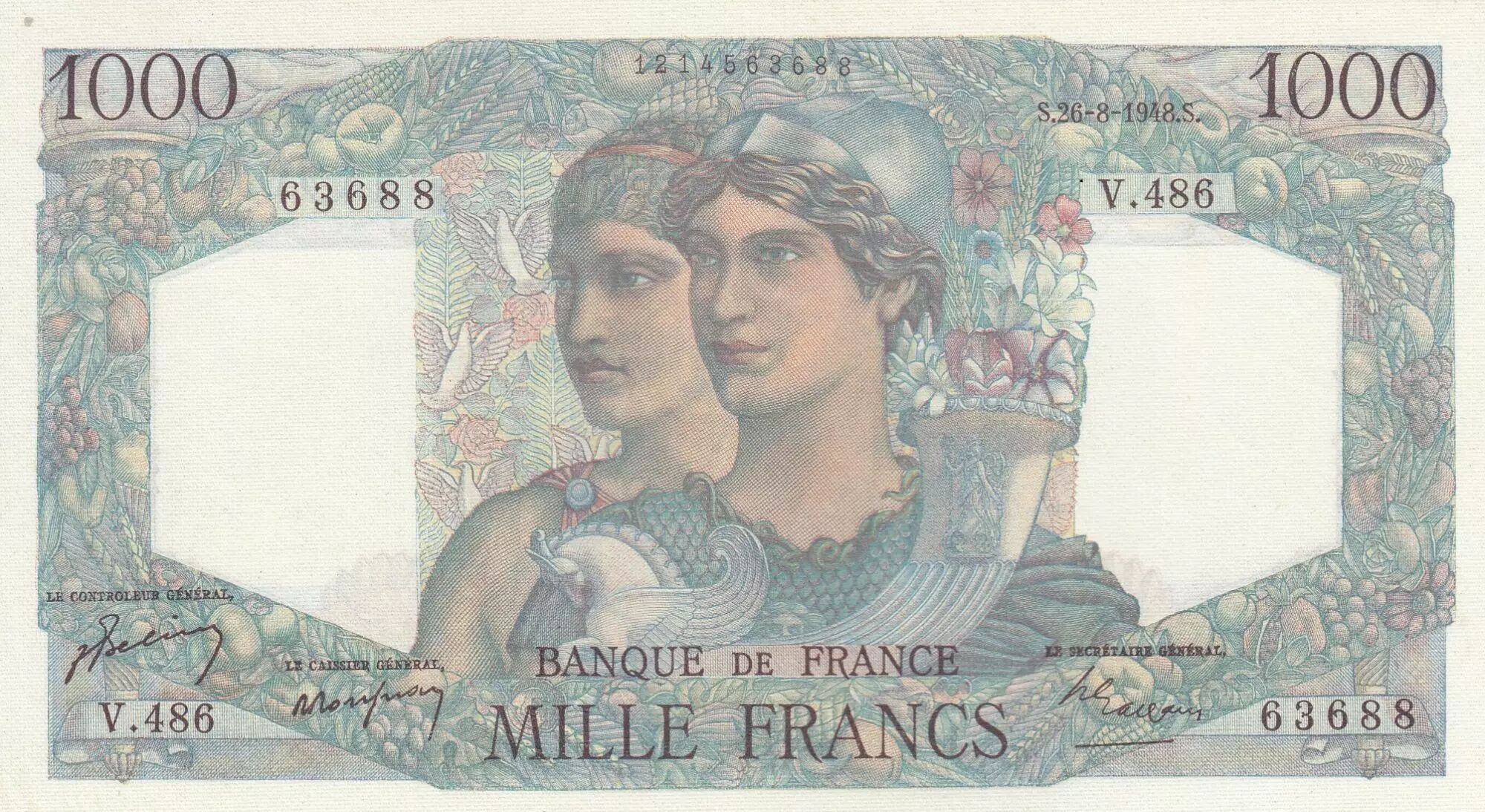 Banknote France 1000 Francs - Minerva and Hercules - 26-08-1948 - Serial V.486