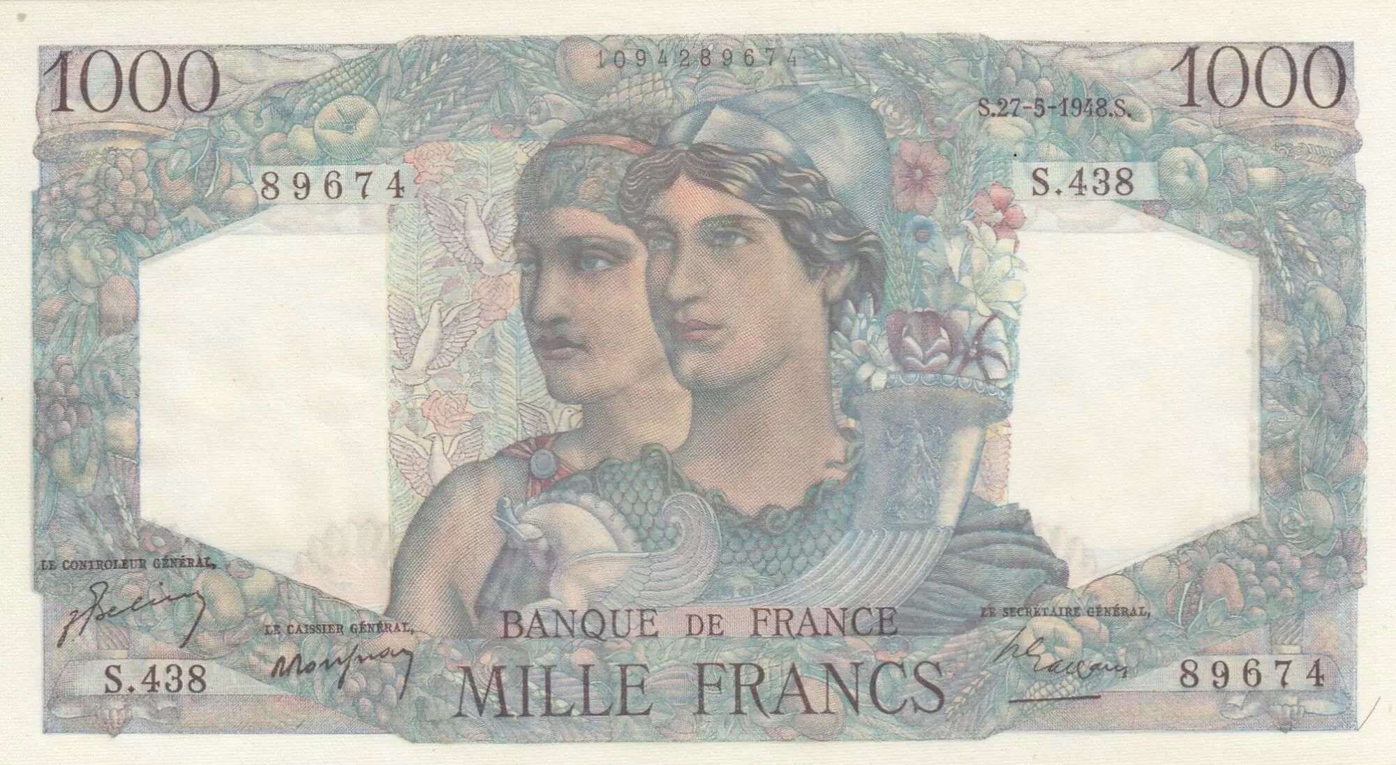 Banknote France 1000 Francs - Minerva and Hercules - 27-05-1948 - Serial S.438