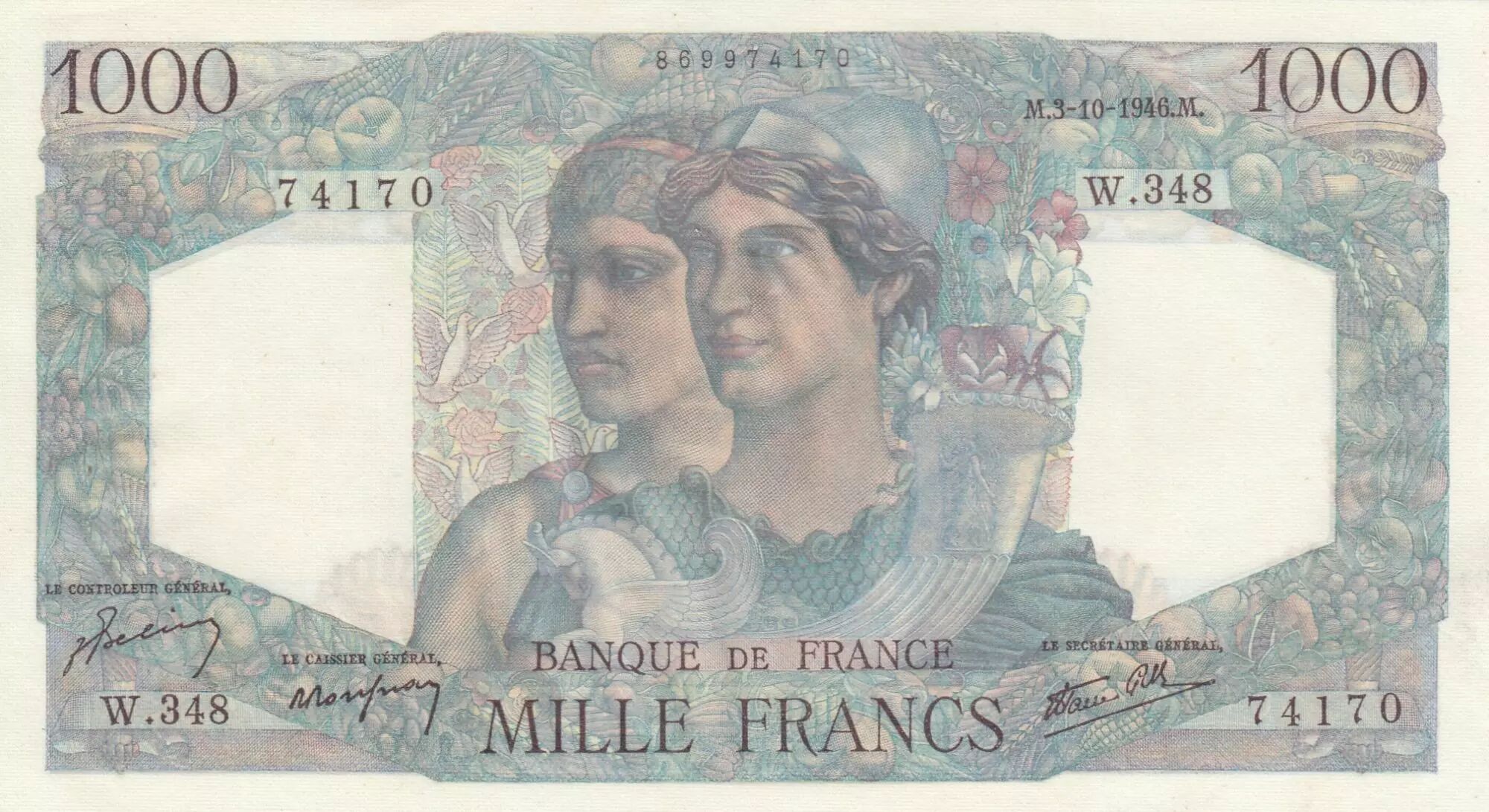 Home > > France 1000 Francs - Minerve and Hercule - 03-10-1946 - Serial W.348