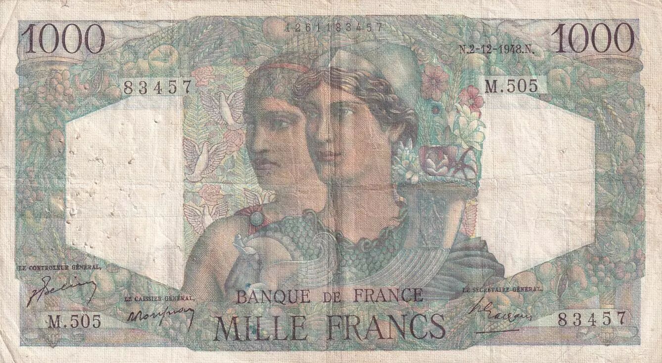 Accueil > Archivage > France 1000 Francs Minerve et Hercule - 02-12-1948 - Série M.505 - F.41.24