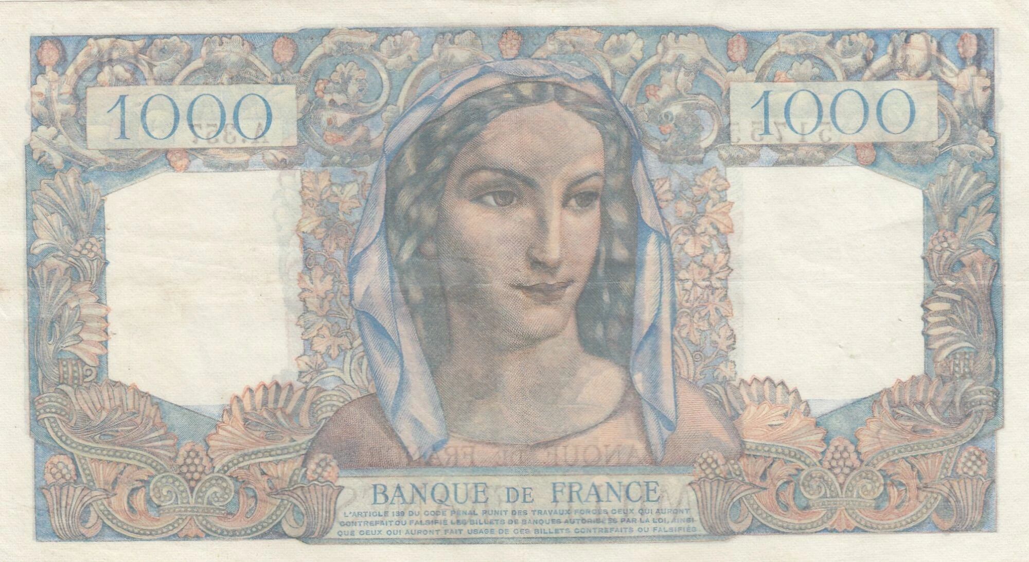 En tant que moyen de paiement, le billet de 1000 francs a circulé à une époque où la France se reconstruisait après la Seconde Guerre mondiale. Il témoigne du contexte économique et social de cette période.