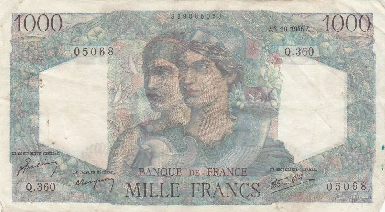 Accueil > Billets Français > Billets Banque de France > France 1000 Francs Minerve et Hercule - 03-10-1946 - Série Q.360