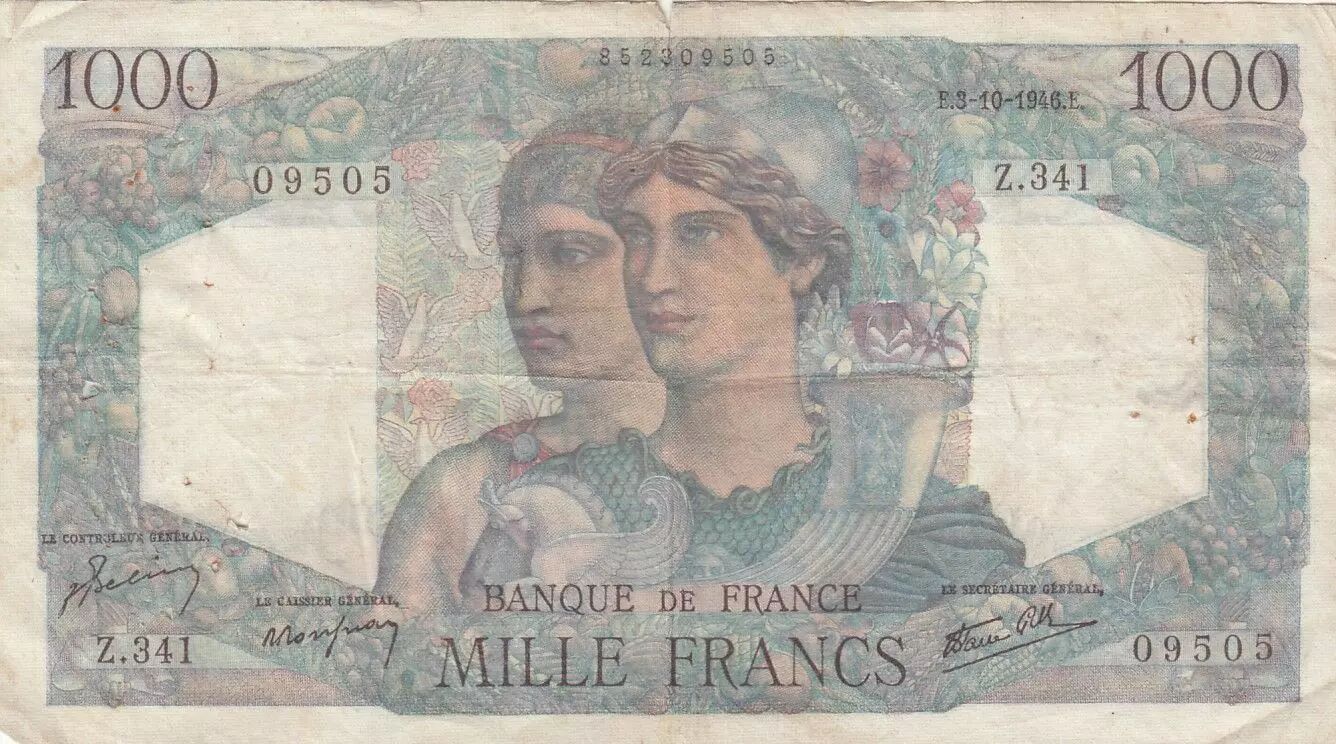 Accueil > Billets Français > Billets Banque de France > France 1000 Francs Minerve et Hercule - 03-10-1946 - Série Z.341