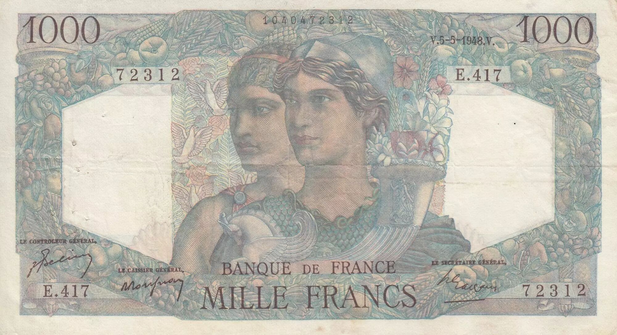 Accueil > Billets Français > Billets Banque de France > France 1000 Francs - Minerve et Hercule - 05-05-1948 - Série E.417