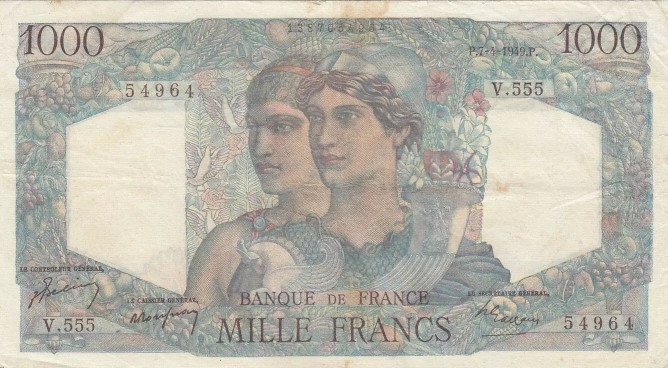 Accueil > Archivage > France 1000 Francs Minerve et Hercule - 07-04-1949 - Série V.555