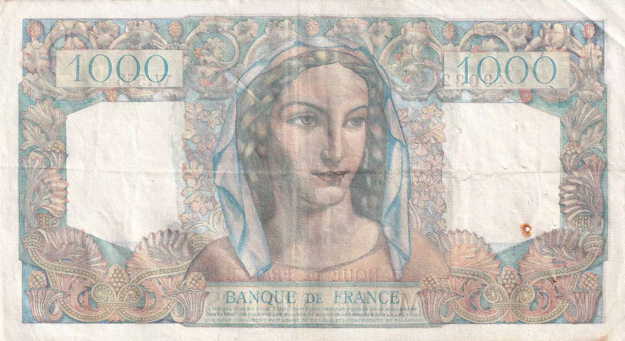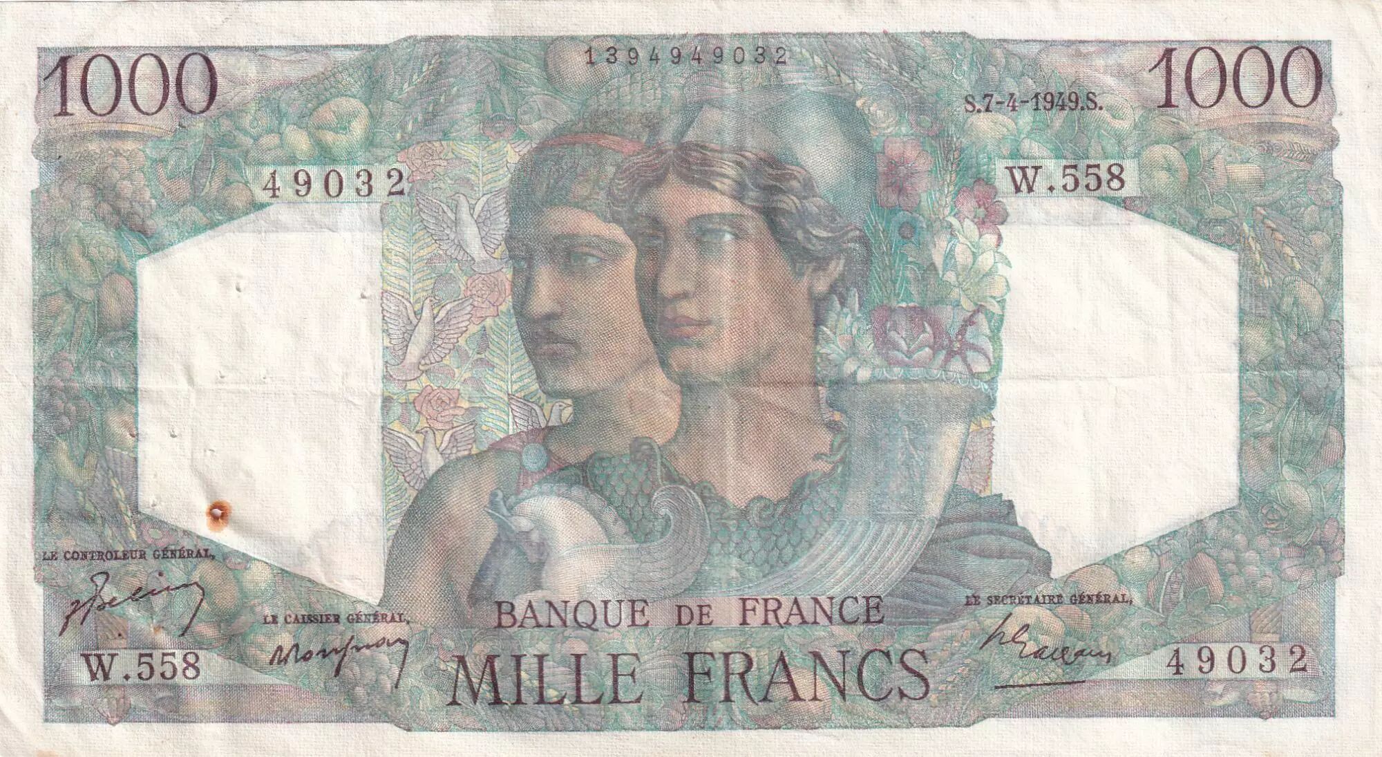 Accueil > Archivage > France 1000 Francs Minerve et Hercule - 07-04-1949 - Série W.558 - TTB
