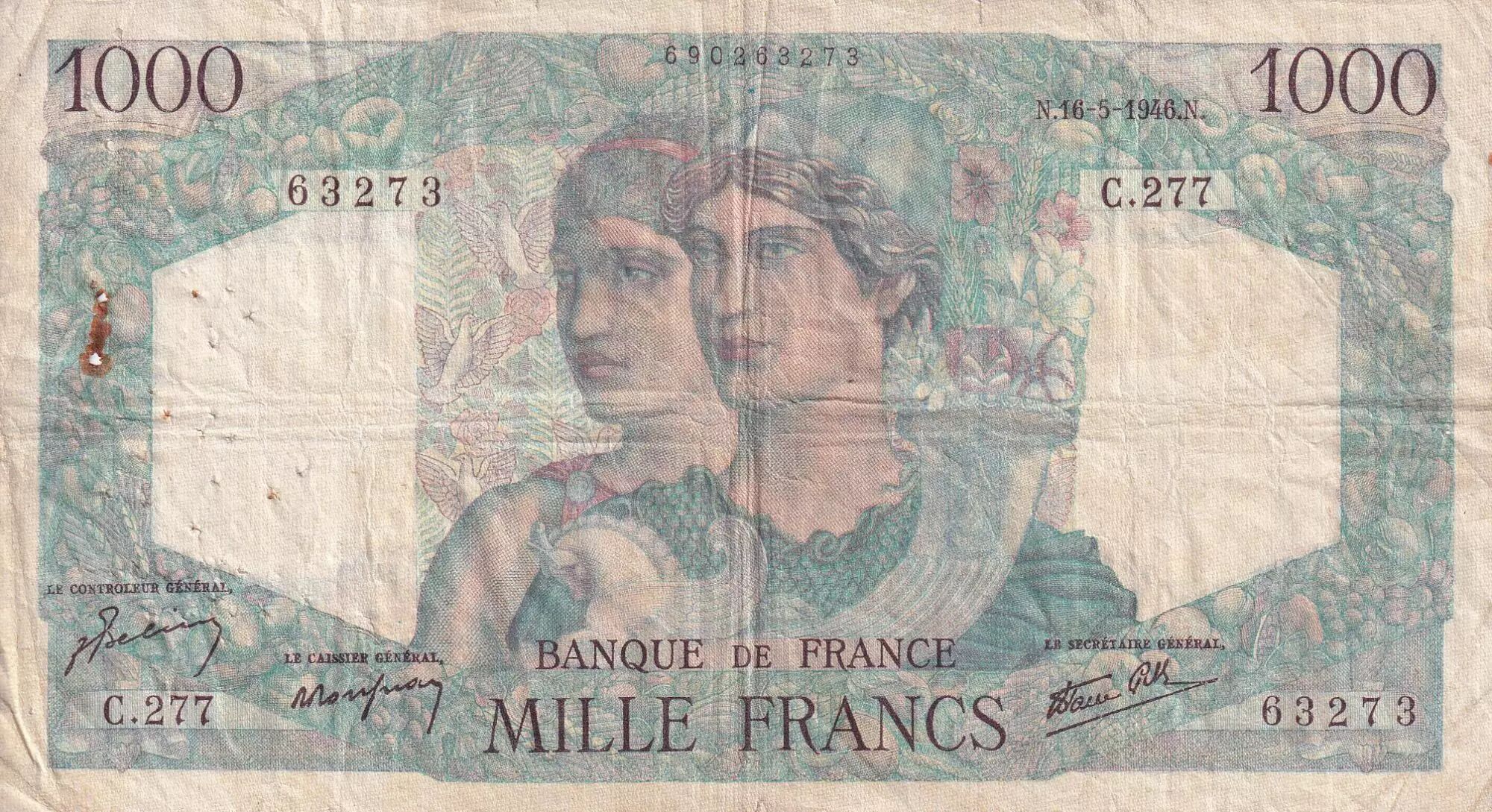 Accueil > Archivage > France 1000 Francs - Minerve et Hercule - 16-05-1945 - Série C.277 - TB - F.41.14