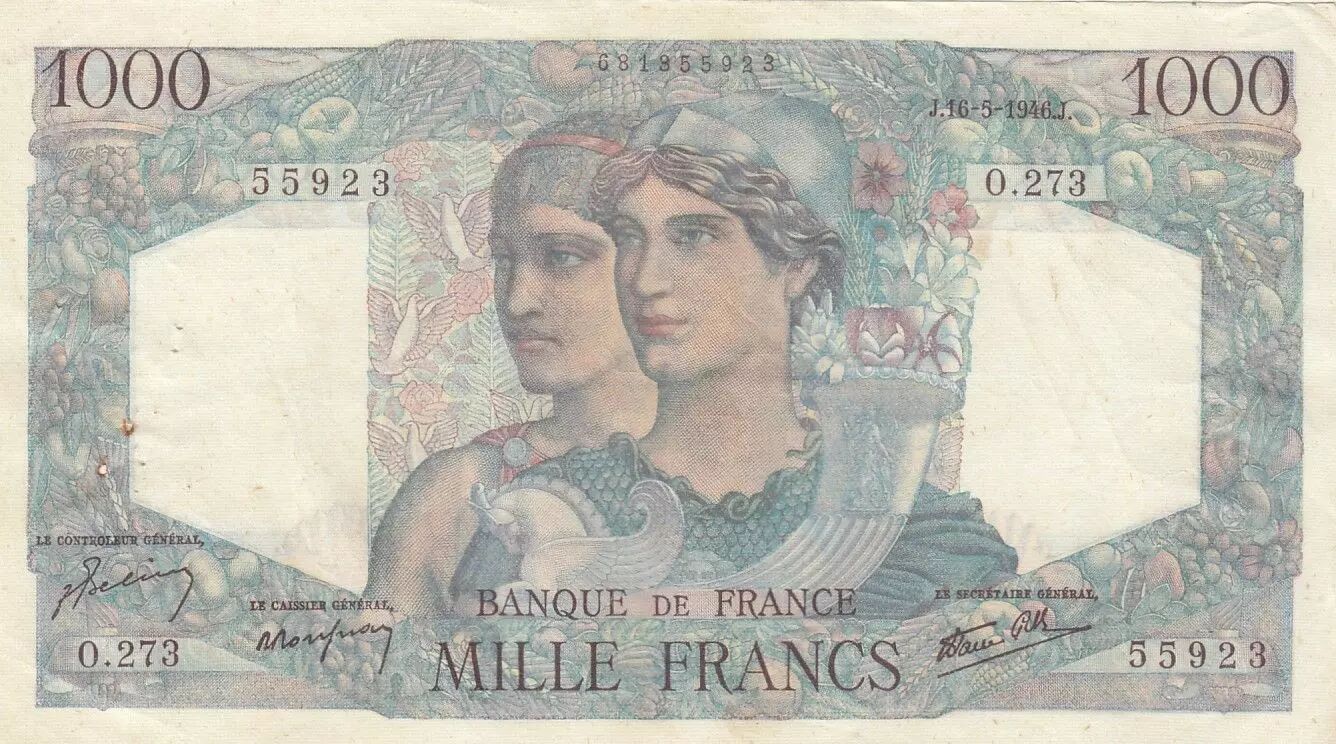 Accueil > Archivage > archivage-Billets Français > France 1000 Francs Minerve et Hercule - 16-05-1946 - Série O.273
