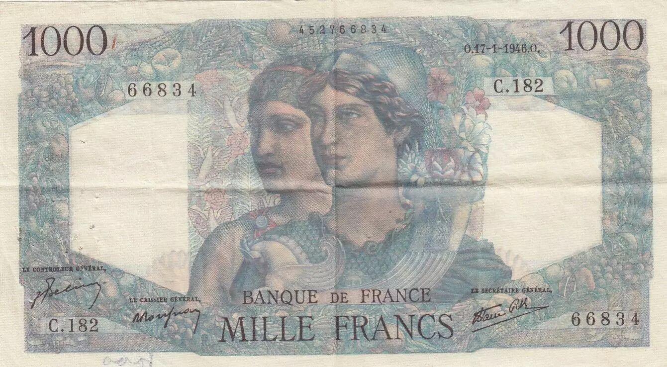 Accueil > Billets Français > Billets Banque de France > France 1000 Francs Minerve et Hercule - 17-01-1946 - Série C.182