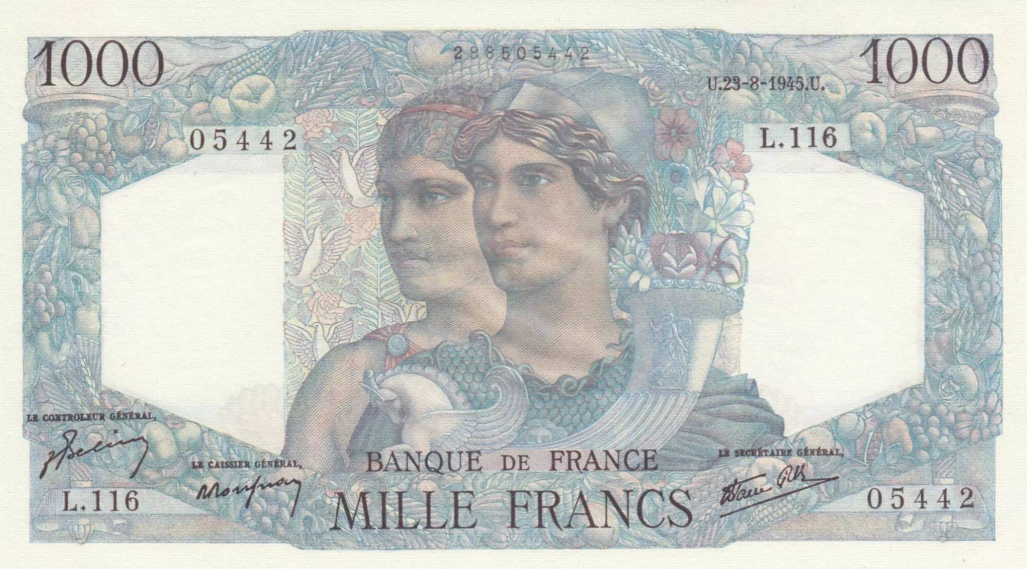 Accueil > Archivage > archivage-Billets Français > France 1000 Francs - Minerve et Hercule - 23-08-1945 - Série L.116