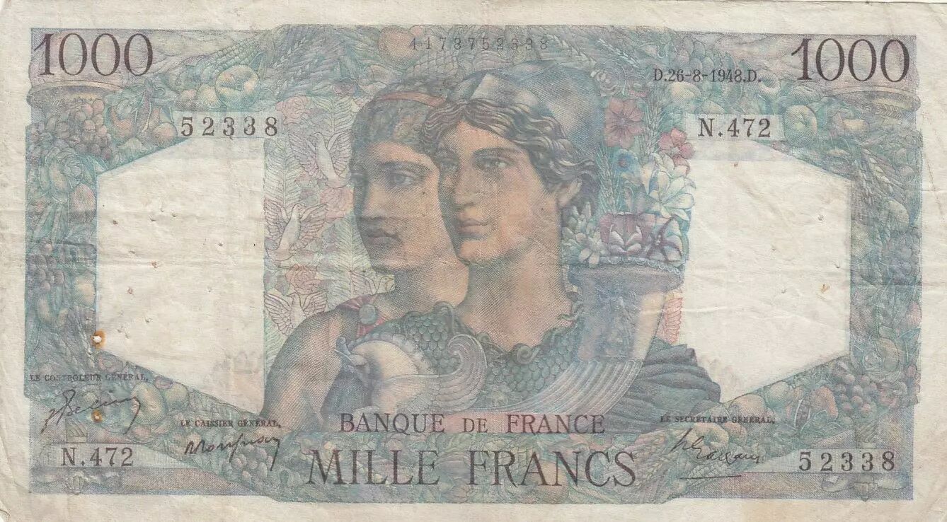 Accueil > Archivage > France 1000 Francs Minerve et Hercule - 26-08-1948 - Série N.472