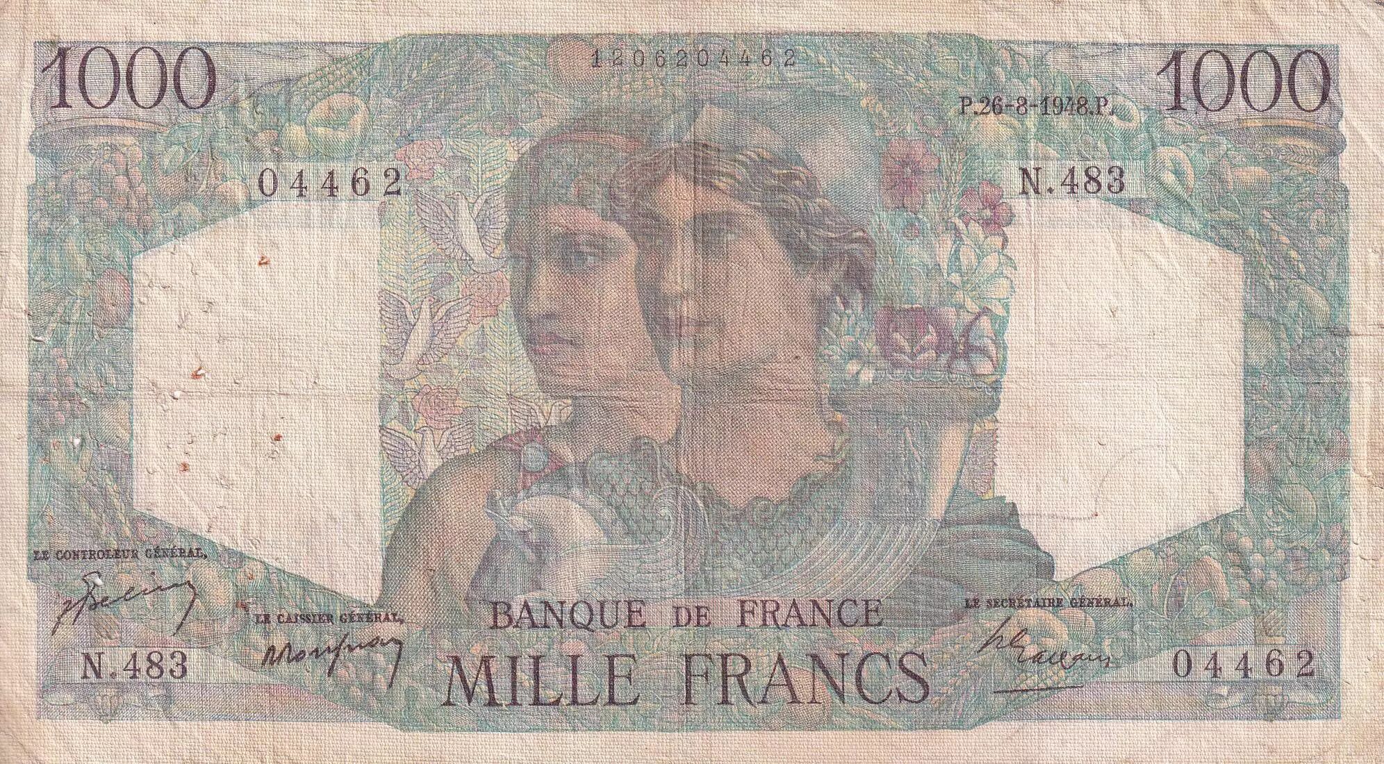 Accueil > Archivage > France 1000 Francs - Minerve et Hercule - 26-08-1948 - Série N.483 - TB - F.41.23