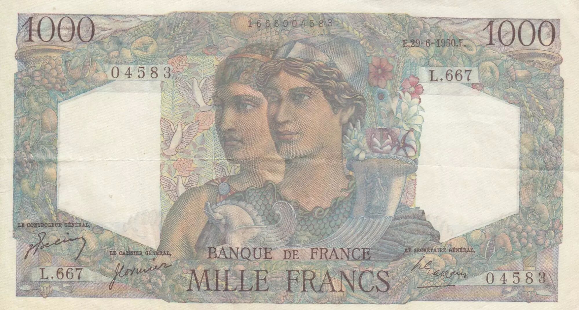 Accueil > Archivage > France 1000 Francs - Minerve et Hercule - 29-06-1950 - Série L.667