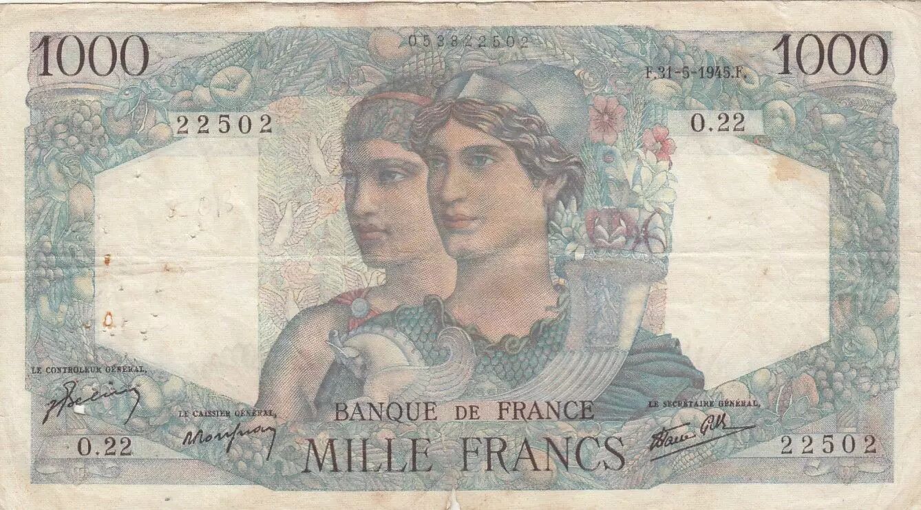 Accueil > Archivage > France 1000 Francs Minerve et Hercule - 31-05-1945 - Série O.22