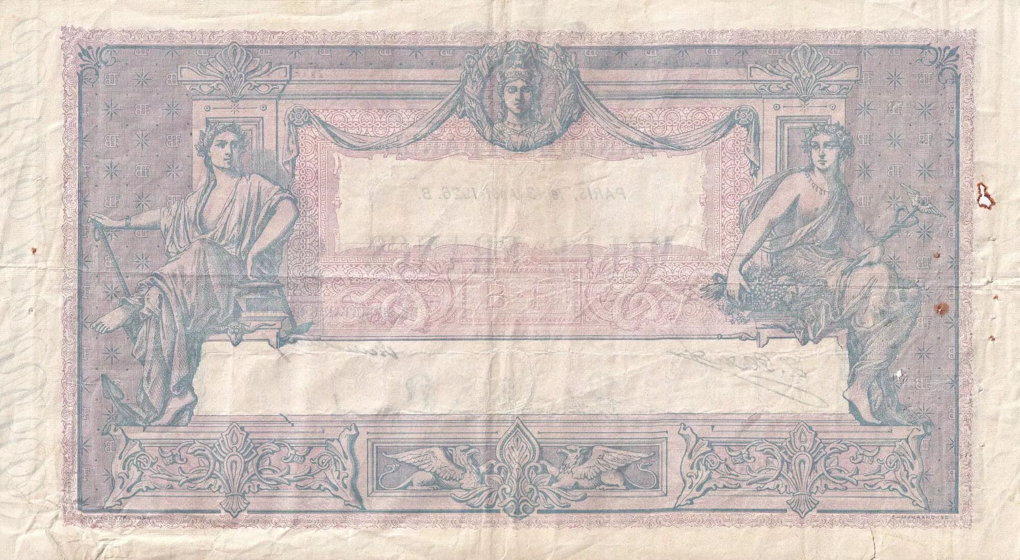 Home > French Banknotes > Bank of France Banknotes > 1000 Francs Banknotes > Blue and Pink Type 1889 (1889-1926) > France 1000 Francs - Pink and blue - 13-08-1926 - Serial A.2646 - VF - P.67