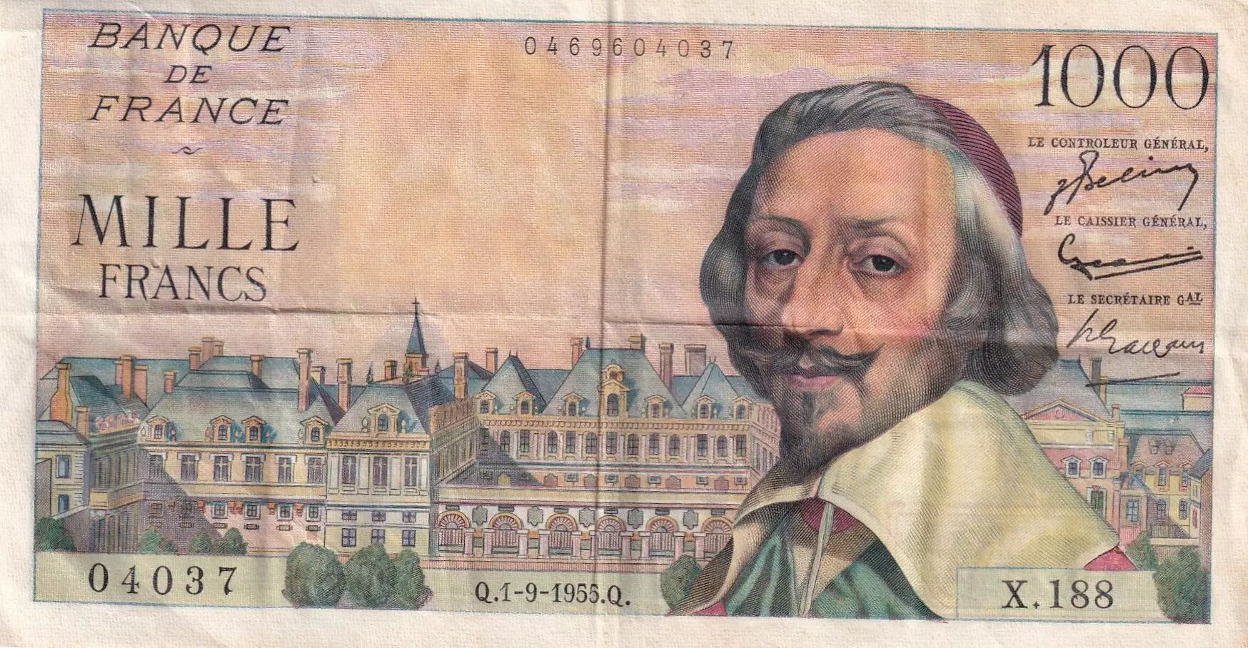 Home > > France 1000 Francs Richelieu 01-09-1955 - Serial X.188