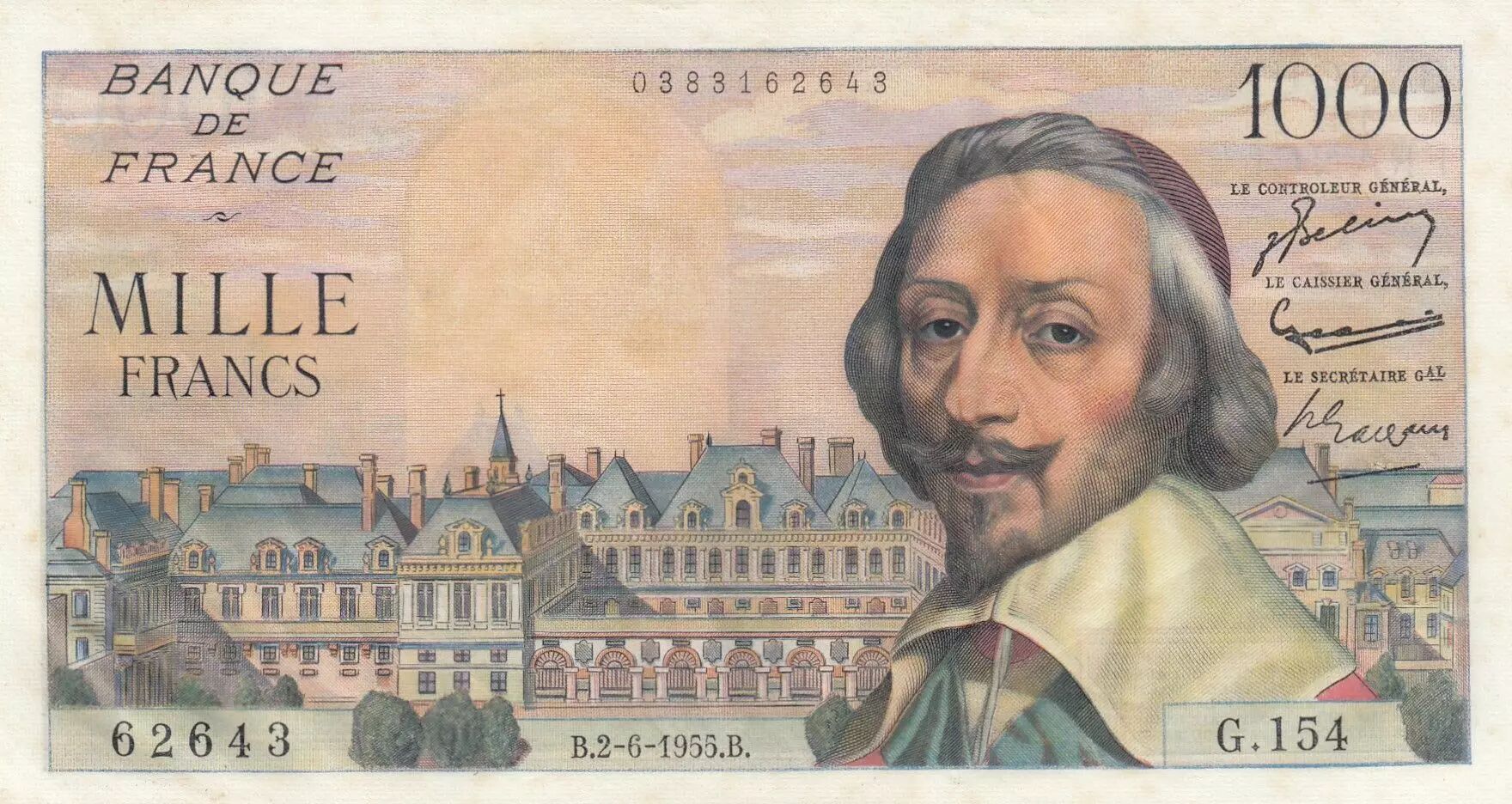 Home > > France 1000 Francs - Richelieu - 02-06-1955 - Serial G.154