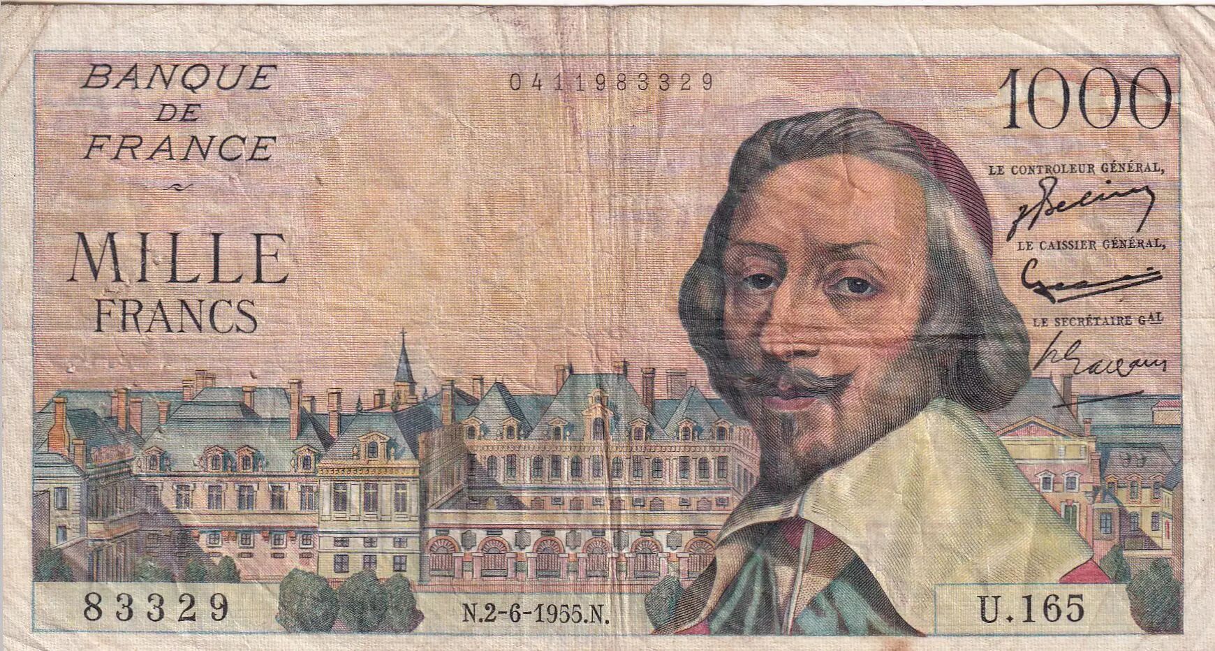 Accueil > Archivage > France 1000 Francs - Richelieu - 02-06-1955 - Série U.165 - F.42.14