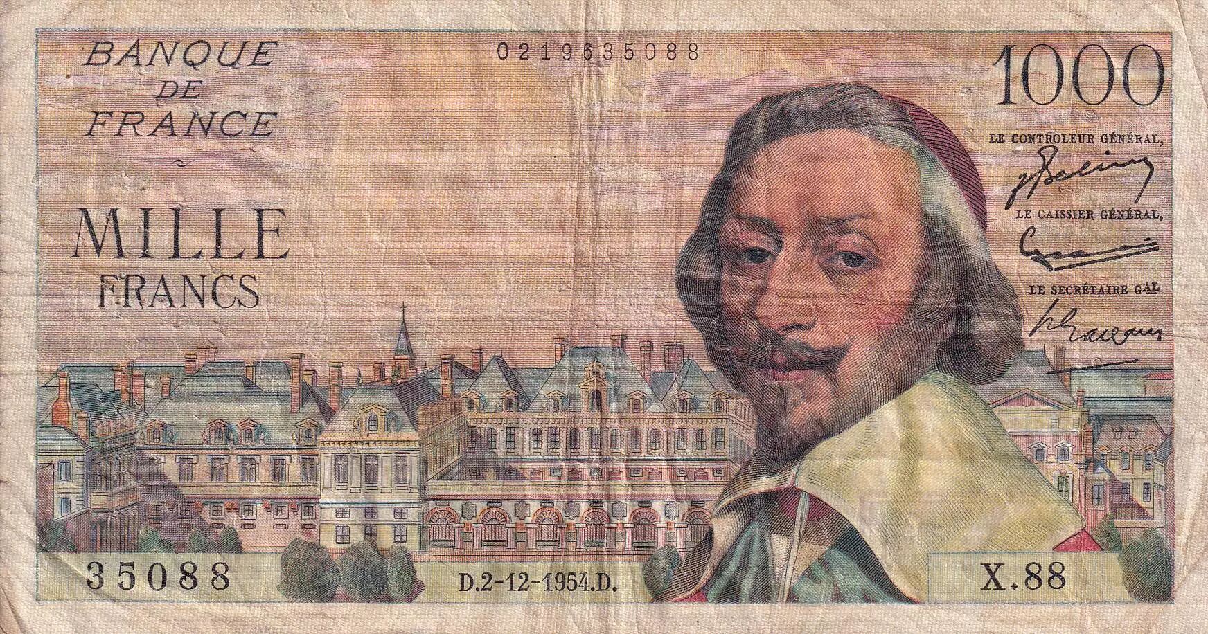 Banknote France 1000 Francs - Richelieu - 02-12-1954 - Serial X.88 - F - P.134a