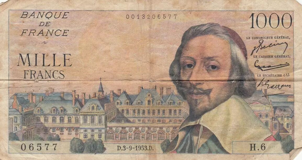 Home > > France 1000 Francs Richelieu - 03-09-1953 - Serial H.6