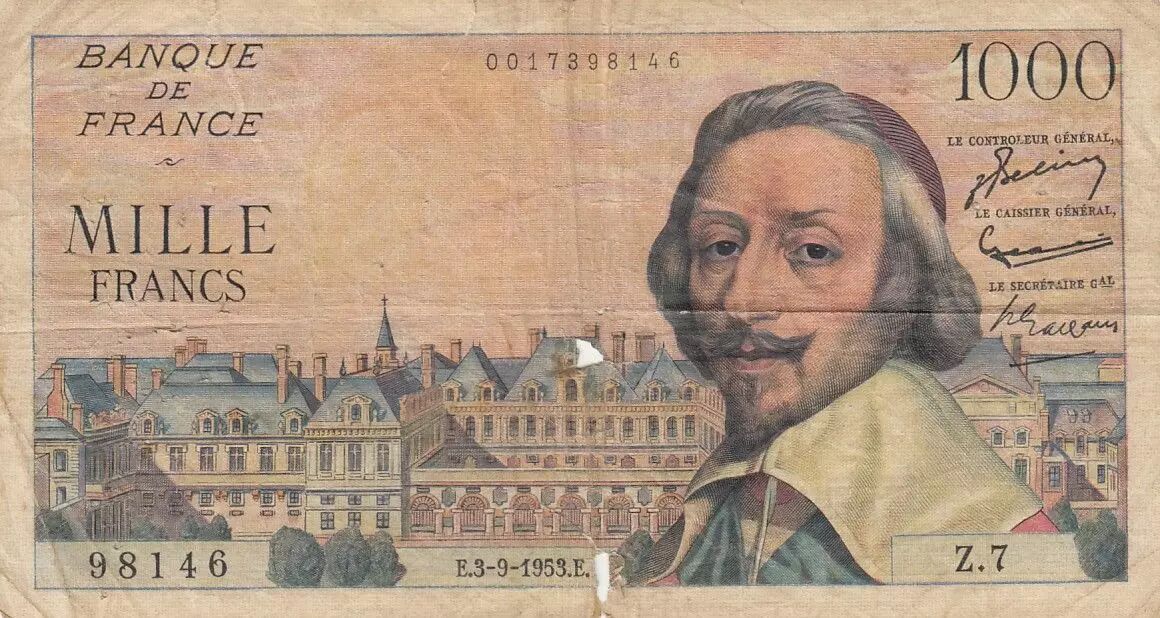 Accueil > Archivage > France 1000 Francs Richelieu - 03-09-1953 - Série Z.7