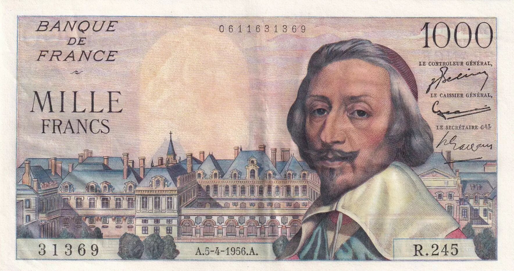 Accueil > Archivage > archivage-Billets Français > France 1000 Francs Richelieu - 05-04-1956 Série R.245