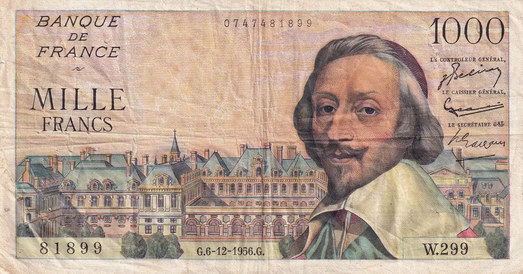 Accueil > Archivage > France 1000 Francs - Richelieu - 06-12-1956 - Série W.299