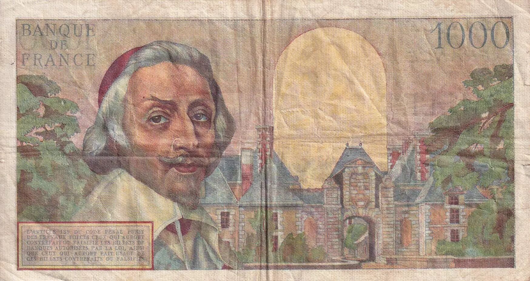Banknote France 1000 Francs - Richelieu - 07-10-1954 - Serial D.73 - F - P.134a