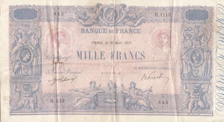 Billet France 1000 Francs - Rose et Bleu - 16-08-1917 - Série H.1113