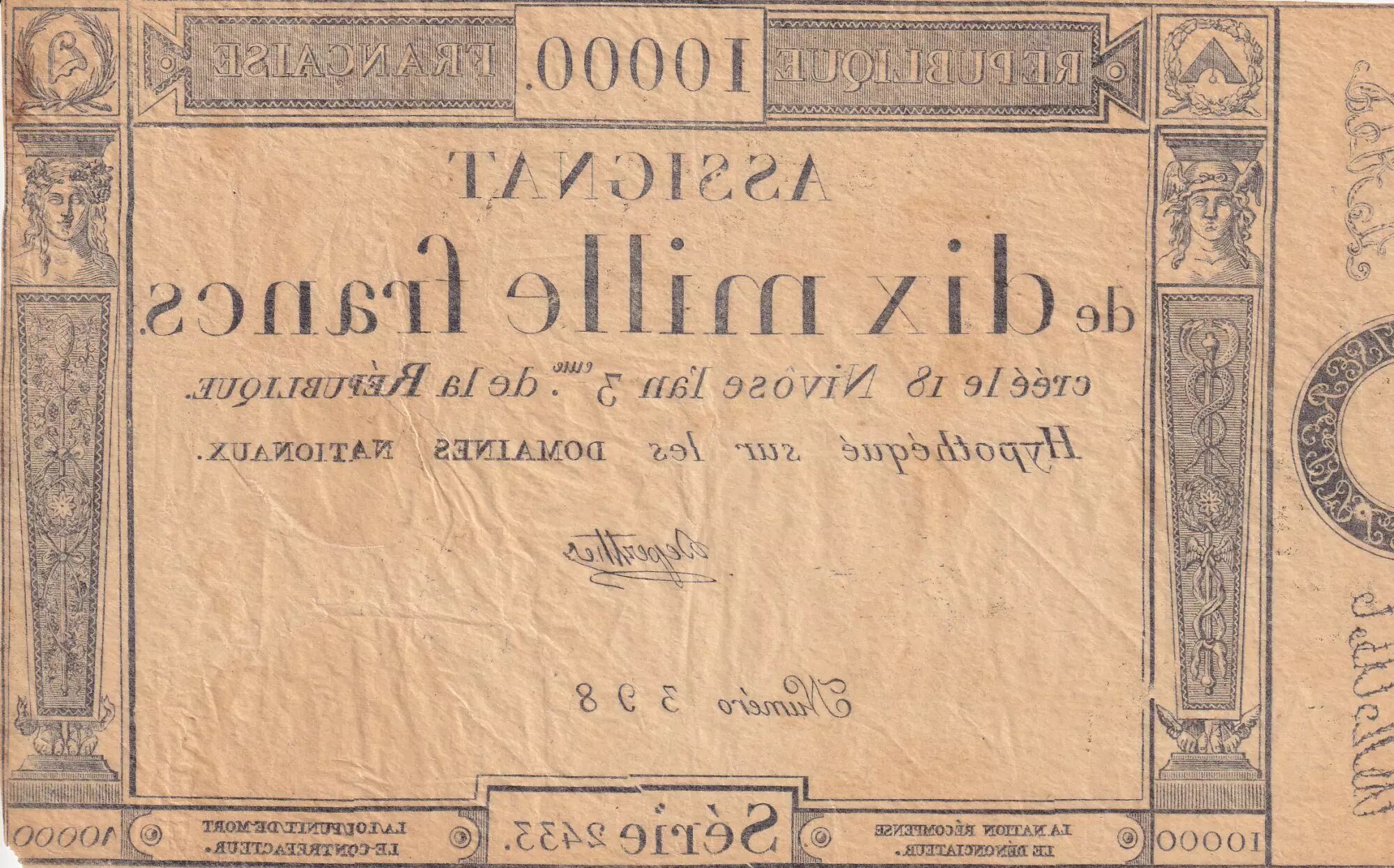 Home > > France 10000 Francs - 18 Nivose An III - 7.1.1795 - Sign. Deperthe - VF