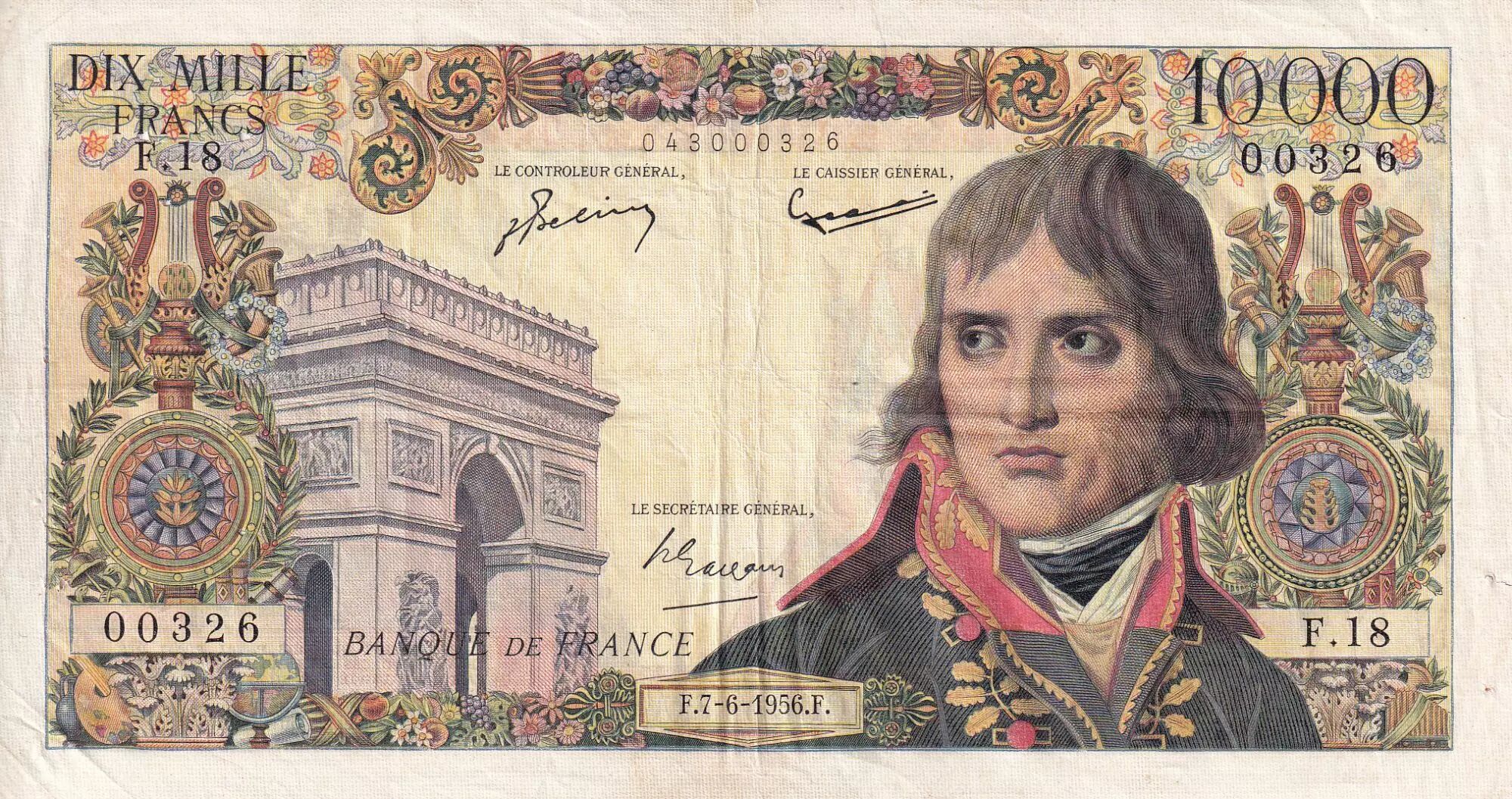Home > > France 10000 Francs - Bonaparte - 1956 - Serial F.18 - VF - P.140