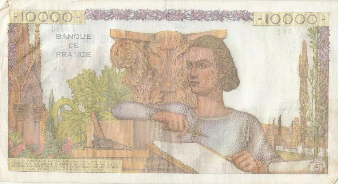 Banknote France 10000 Francs - French genieus - 01-09-1955 - Serial T.9614