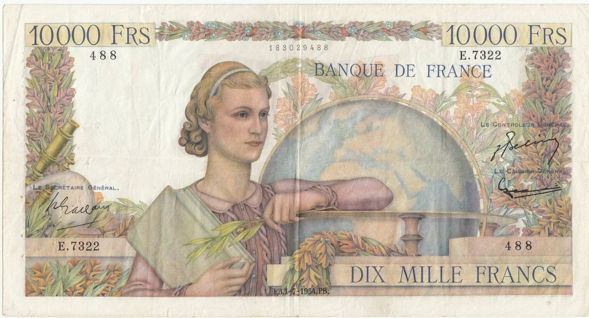 Accueil > Archivage > France 10000 Francs - Génie Français - 01-07-1954 - Série E.7322