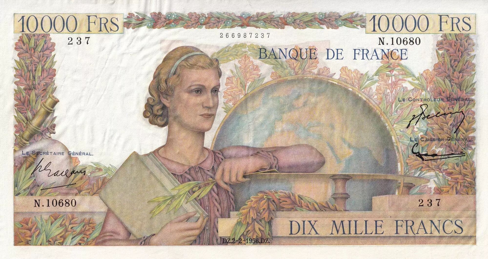 Banknote France 10000 Francs - Génie Français - 02-02-1956 - Serial E.10680 - P.132