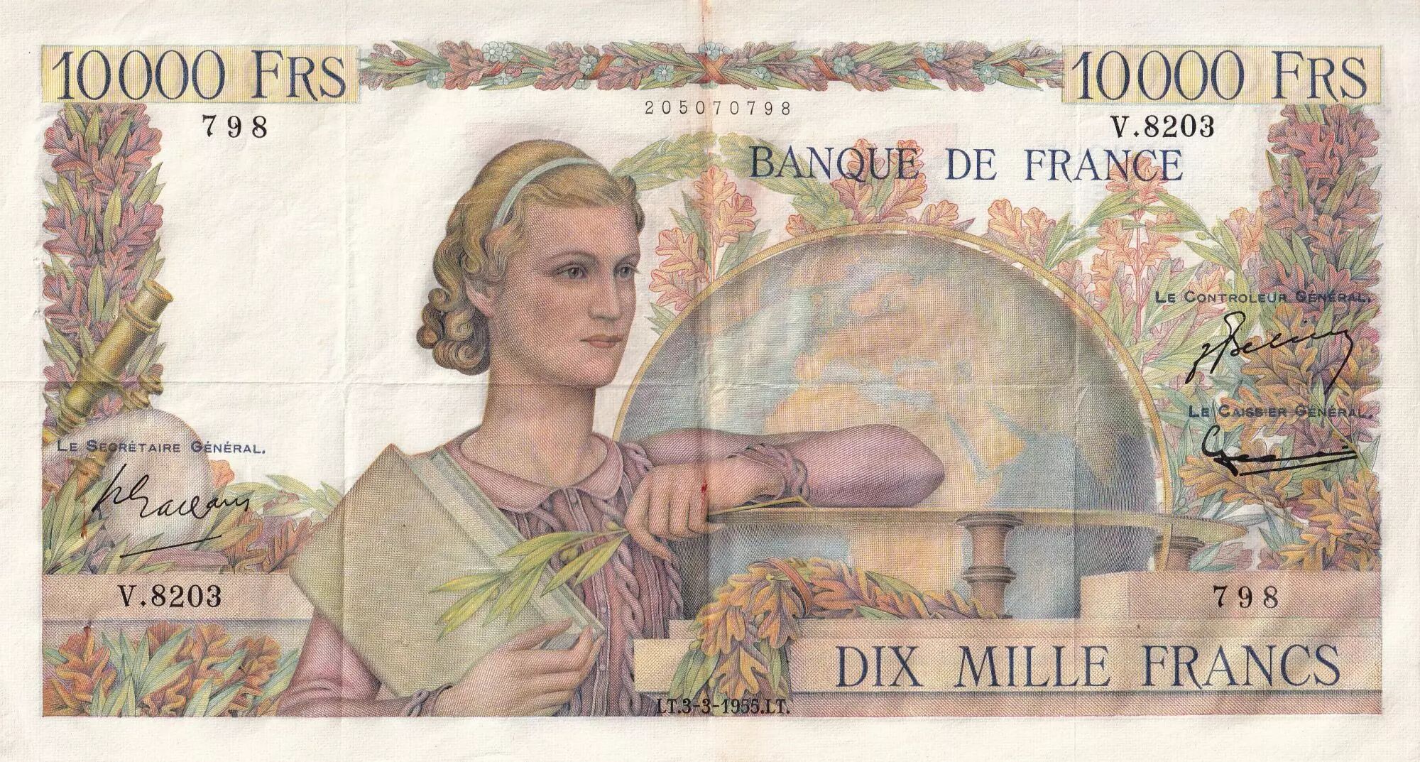 Accueil > Archivage > France 10000 Francs - Génie Français - 03-03-1955 - Série V.8203 - F.50.73