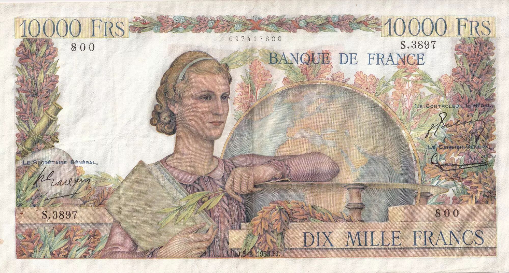 Accueil > Billets Français > Billets Banque de France > Billets 10000 francs > Génie Français type 1945 (1945-1954) > France 10000 Francs - Génie Français - 05-02-1953 - Série S.3897 - F.50.63