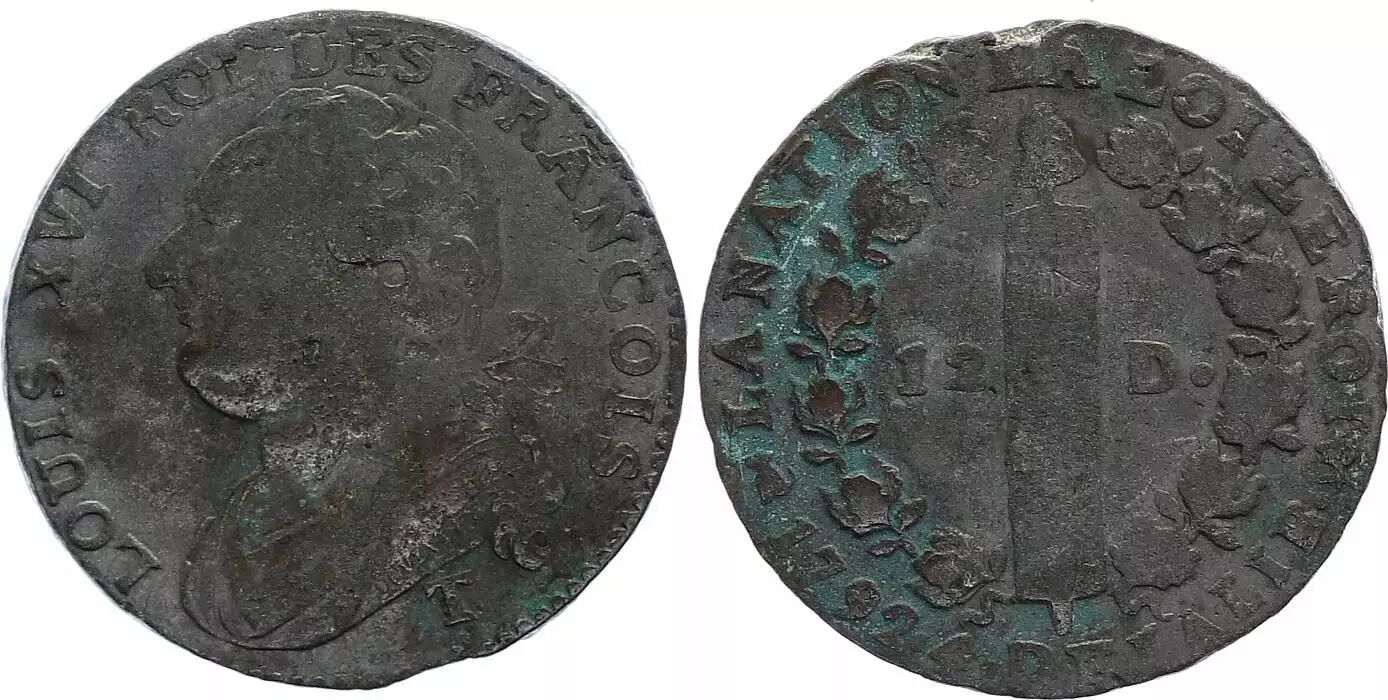 Accueil > Archivage > archivage-Monnaies françaises (470 à 2002) > France 12 Deniers - Louis XVI - Roi des François - 1792 T. Saumur