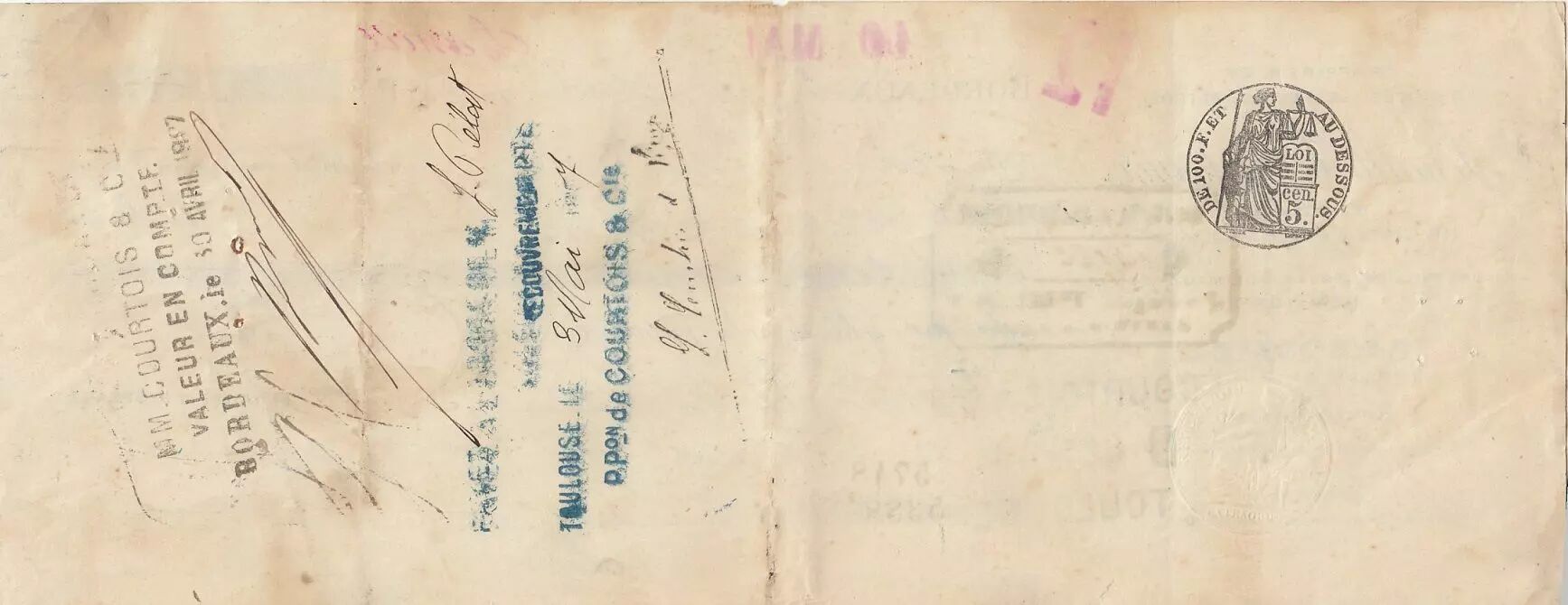 Home > World Banknotes > Checks and Traveler's Checks > France 13 francs - Bank cheque receipt - Fenaille & Despeaux - 1907