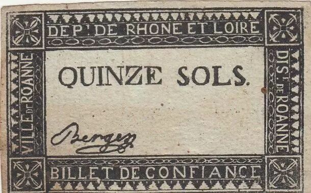 Billet France 15 sols - 1791 - Département du Rhone - Roanne