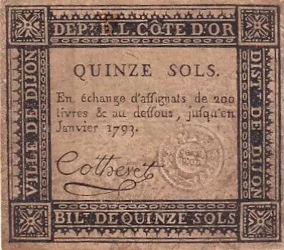 Banknote France 15 Sols - Côte d'Or - Ville de Dijon - 1792