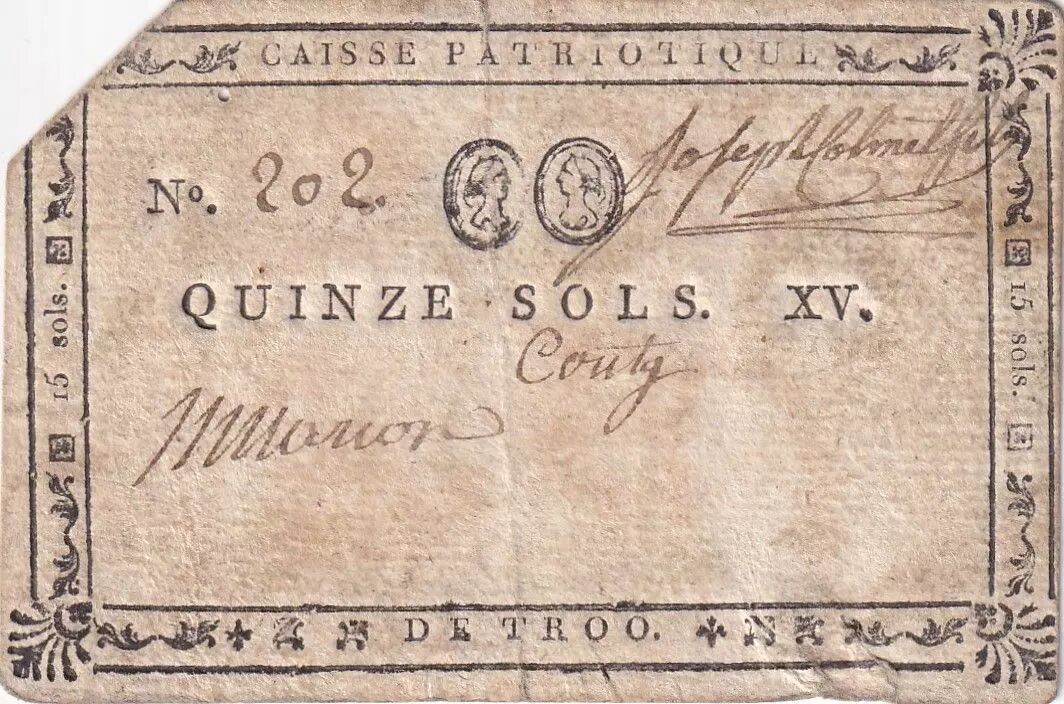 Banknote France 15 Sols - Loire et Cher - Caisse Patriotique de Troo - 1792