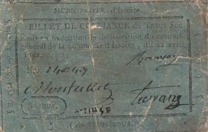 Banknote France 15 sous - Puy de dôme - Municipality of Issoire - 1792