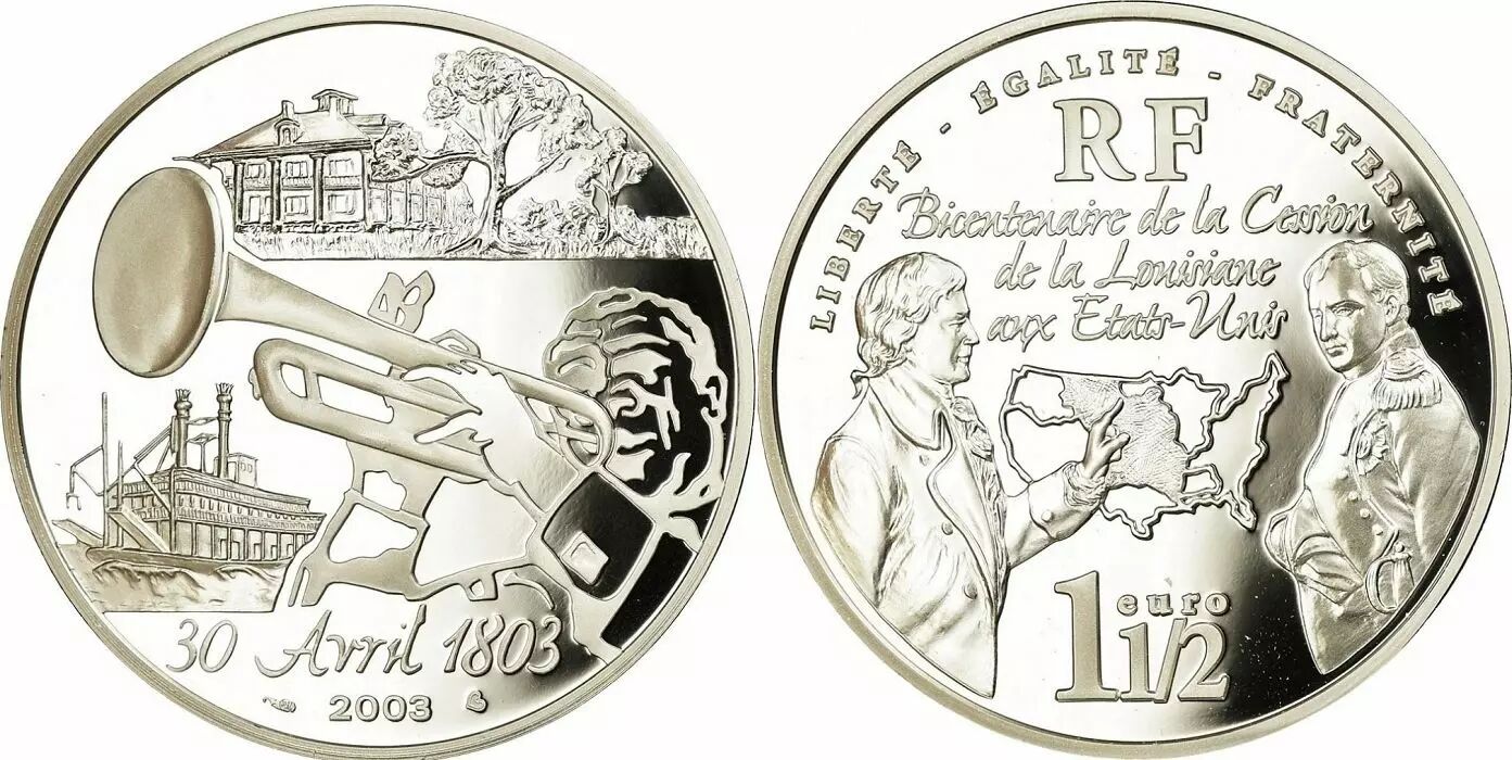 Coin France 1,50 Euros - Sale of Louisiana to USA - 2003 - Silver - with certificat