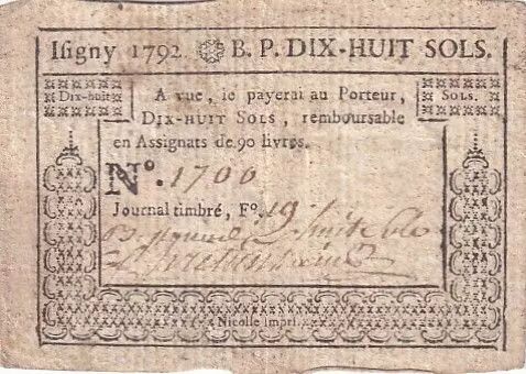Banknote France 18 Sols - Calvados - Isigny - Bon pour - 1792 - Rare