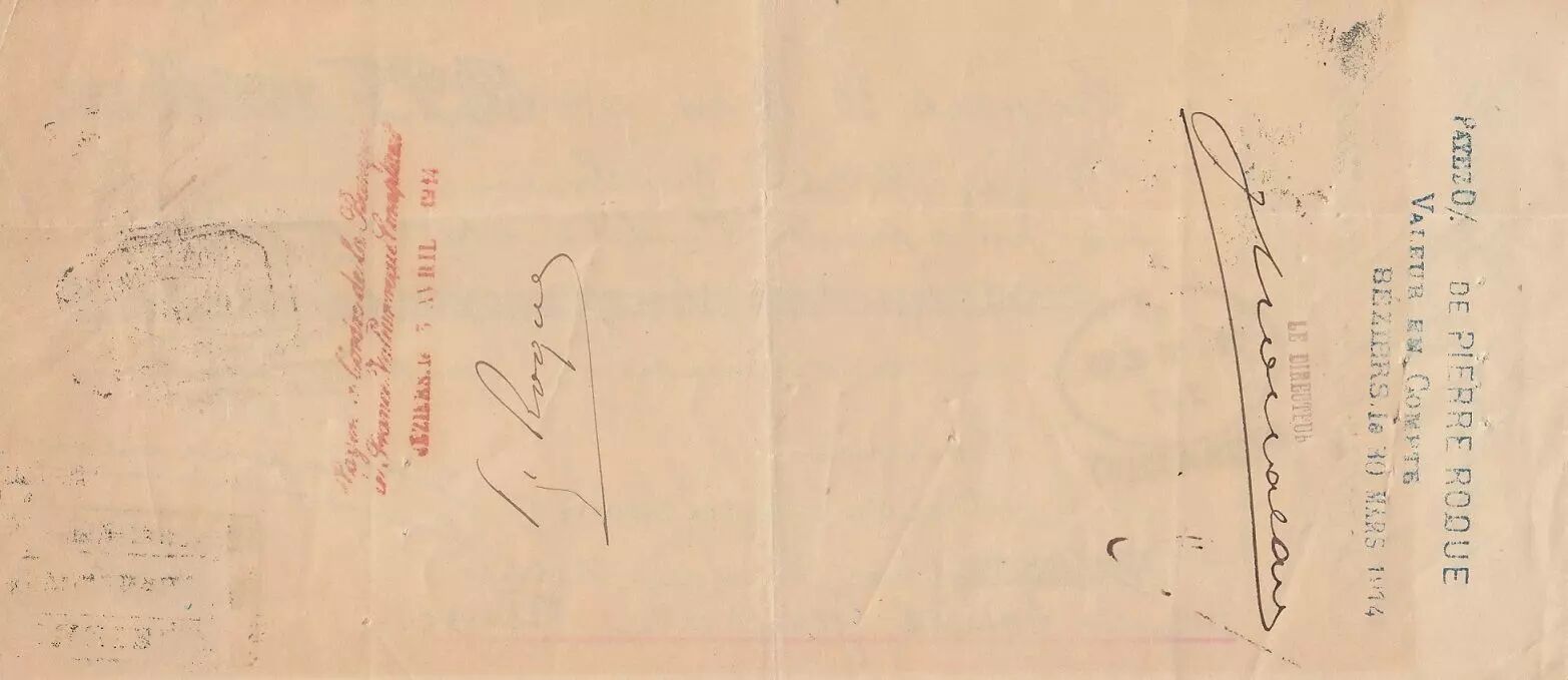 Banknote France 186.85 francs - Bank cheque receipt - Syndicat agricole de Béziers et du Languedoc - 1914