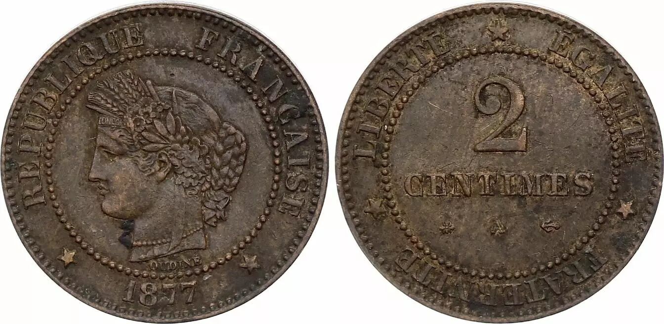 Home > > France 2 centimes Cérès - Third Republic - 1877 A Anchor