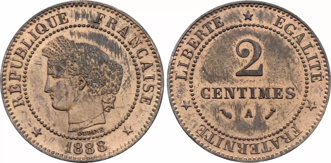 Home > > France 2 Centimes Ceres - Third Republic - 1888 A Paris