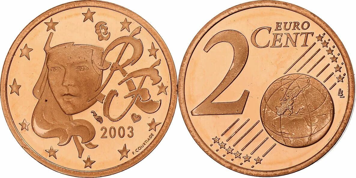 Cette pièce de 2 centimes, frappée en 2003 en France, est une version Belle Épreuve destinée aux collectionneurs. Elle se distingue des pièces de circulation par sa qualité de frappe supérieure et sa provenance exclusive des coffrets Belle Épreuve émis par la Monnaie de Paris.