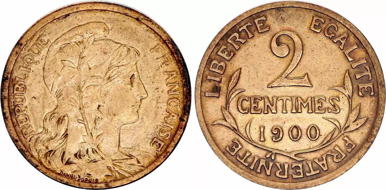 Coin France 2 Centimes Liberty head - 1900 Scarce !