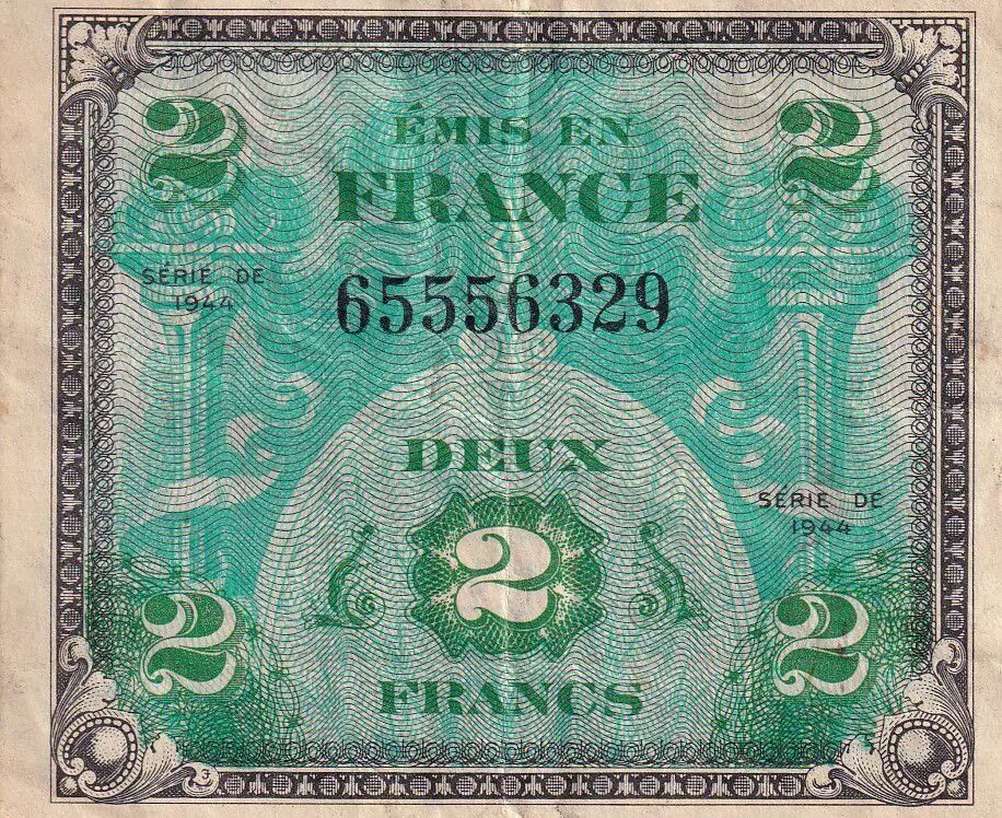Home > > France 2 Francs - Allied Military Currency - 1944 - Without Serial - VF - P.114